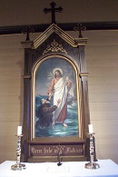 Motiv: Jesus bergar Peter frå å søkke. Laga av Christen Brun ( 1828 – 1905) kopi av Plockhurst i 1891.