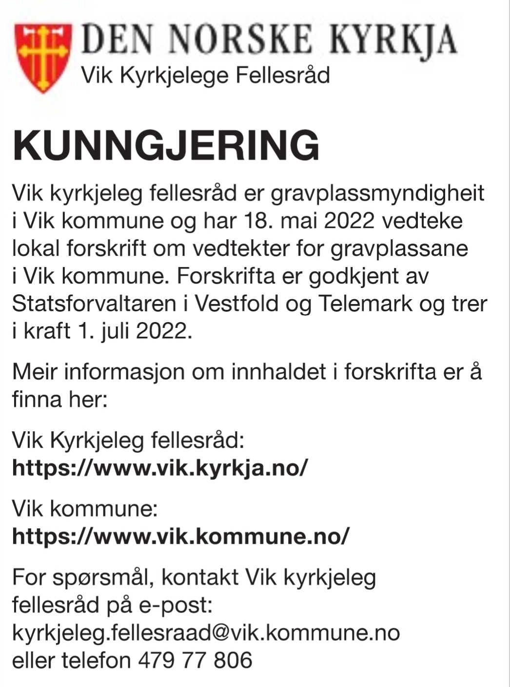 Forskrift om vedtekter for gravplassane i Vik kommune, Vestland